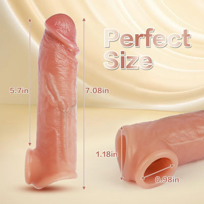 Sex Sleeve with cock-ring sextoyss, Ultra-Soft Silicone 7.1'' Cock Sleeve, Reusable Sex Cuff Thickened Testicle Ring Male adults toys, Sex Extender and Sex Enlarger for Men